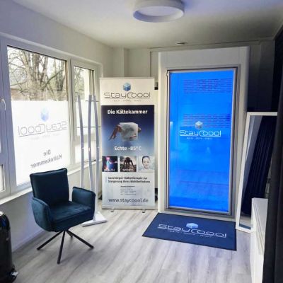 An unserem Standort in Frechen haben Sie auch die Möglichkeit, Kälteanwendungen in der Stay Coool Kältekammer zu nutzen. Die Kältekammer betreibt unser Partner unter eigener Leitung direkt in unserer Praxis, sodass Sie beispielsweise nach einem intensiven Training unmittelbar in der Kältekammer eine Anwendung erhalten können.